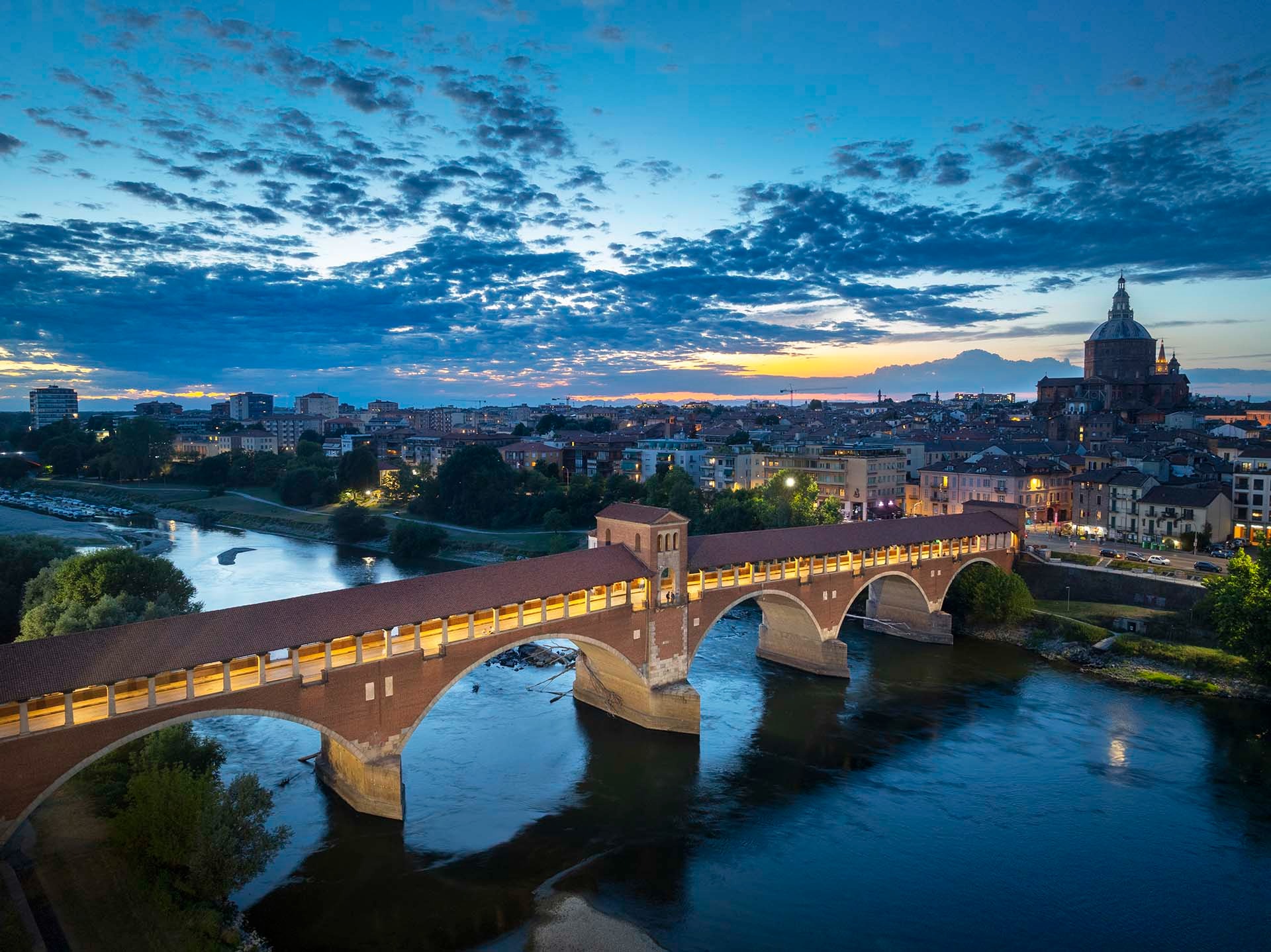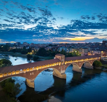 Ticino Nehri, Pavia’nın Roma döneminden bu yana ticaret ve ulaşım açısından stratejik bir rol üstlenmiştir. Ponte Coperto, bu nehir üzerindeki en önemli geçiş noktası olup şehrin kuzey ve güney yakalarını birleştirir. Tarih boyunca askeri ve ticari açıdan kritik bir geçiş olan köprü, bugün Pavia’nın simgelerinden biri olarak kabul edilir. Köprü ve nehir çevresi, şehrin coğrafi ve ekonomik gelişimini anlamak açısından önemli bir referans noktasıdır.